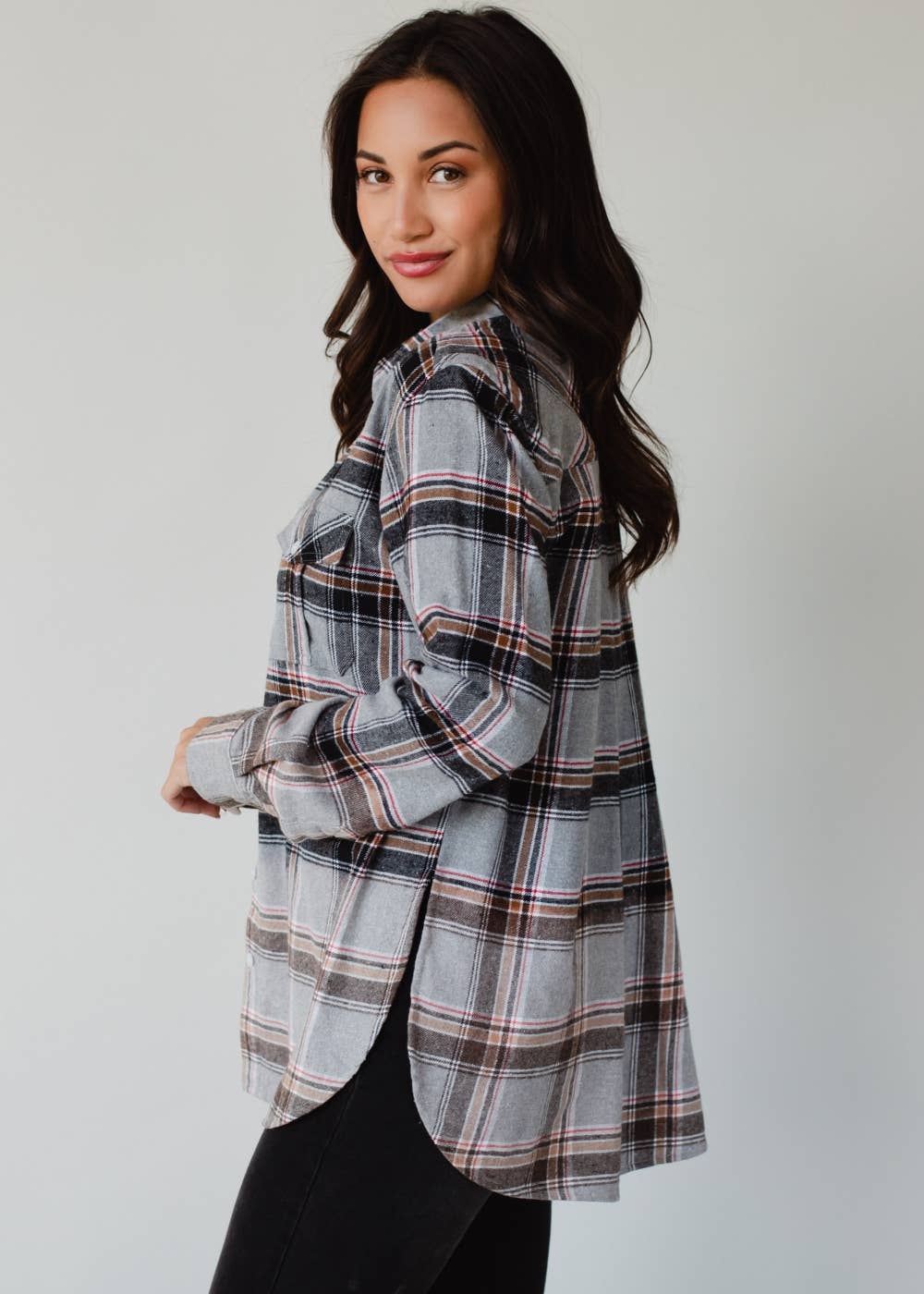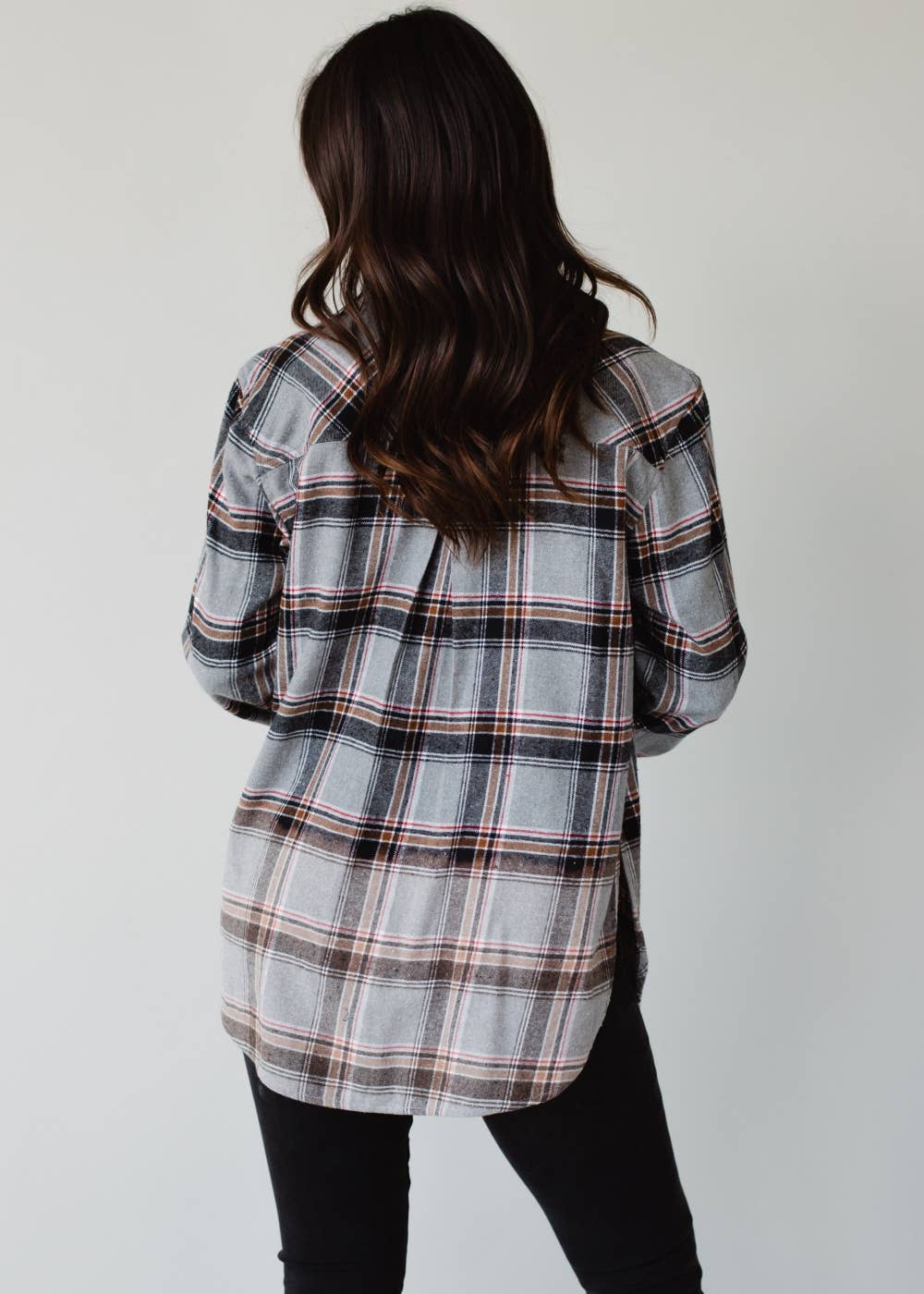 Gray, red, camel & black plaid flannel with bleached dipped contrast 100% Cotton