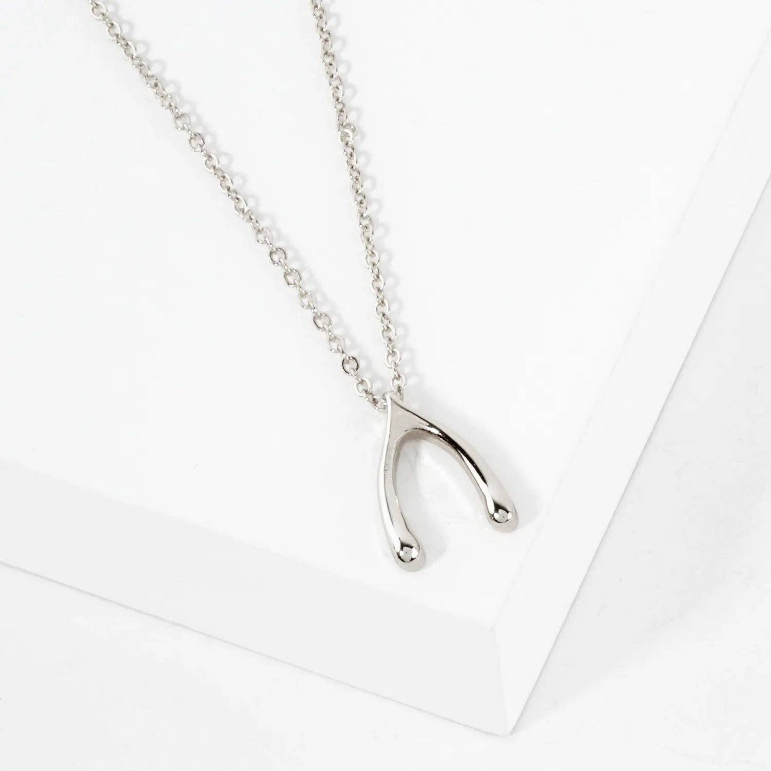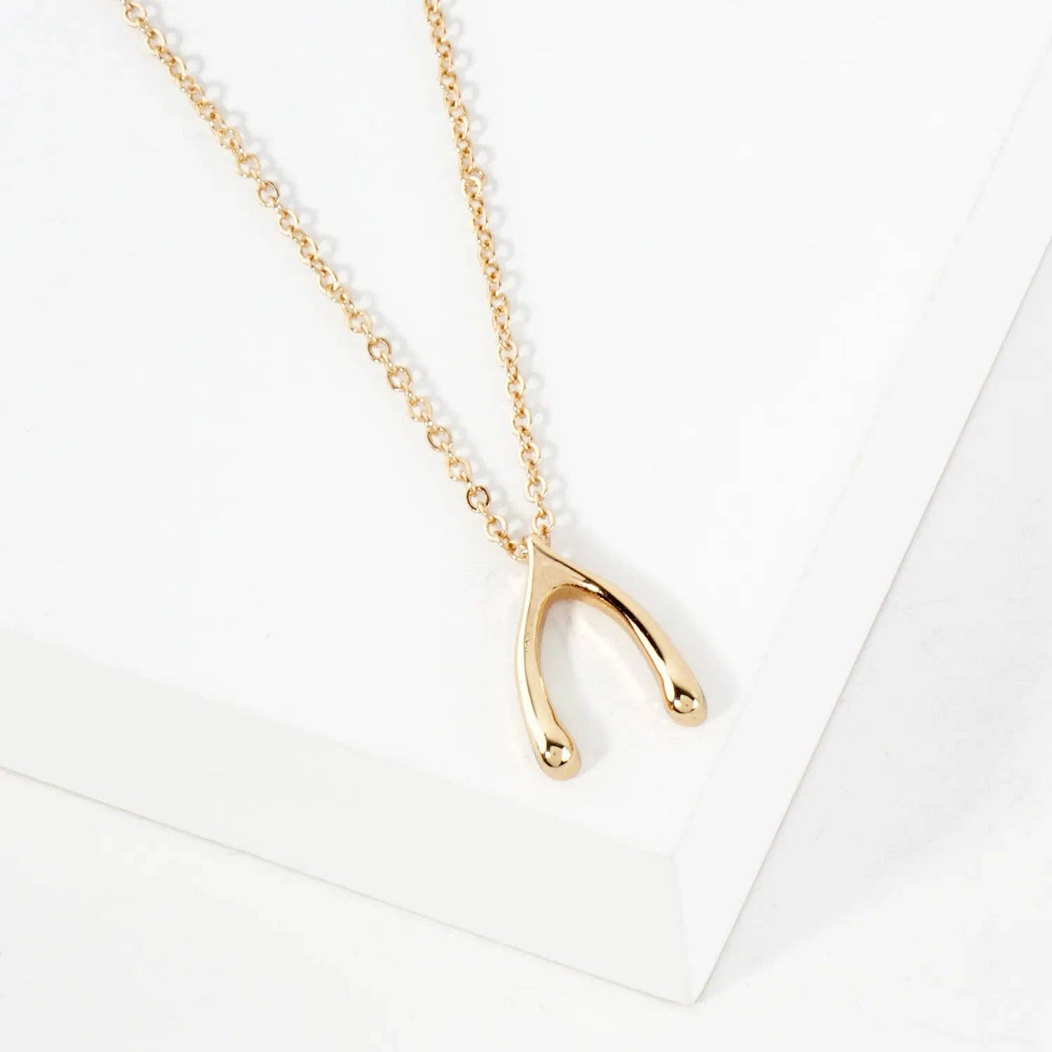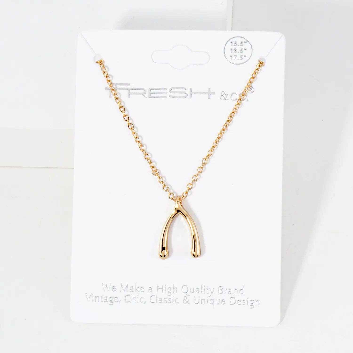 Add A Touch Of Luck And Simplicity To Your Look With This Necklace. Featuring A Sleek, Minimalist Wishbone Charm Crafted In High-shine Metal, This Necklace Offers A Timeless Symbol Of Good Fortune And Hope. Its Clean Lines And Modern Finish Make It Easy To Style For Everyday Wear Or Thoughtful Gifting. A Perfect Piece For Layered Looks Or As A Delicate Standalone Accessory.