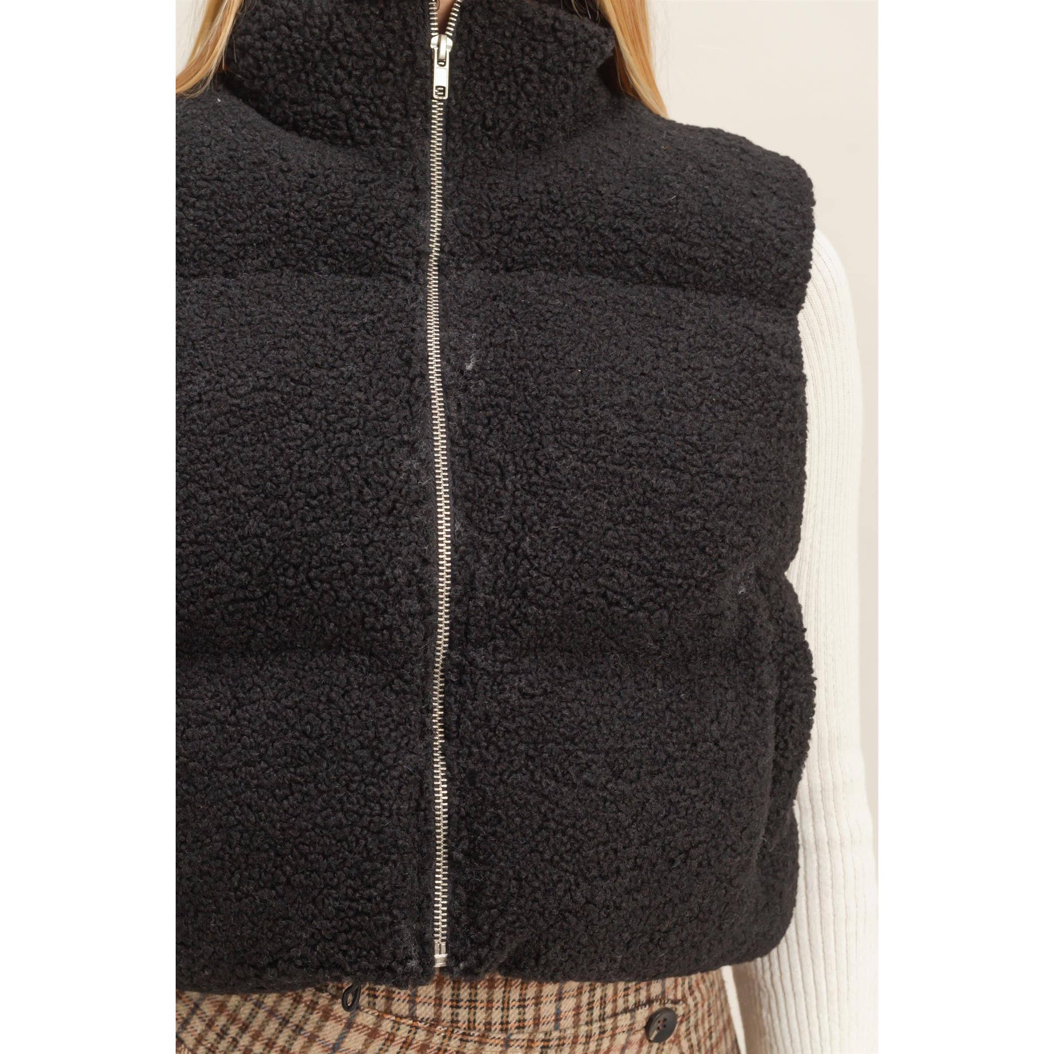 You and this vest go together like cold days and hot cocoa! Made from warm teddy fabric with padding that offers adequate warmth, it is designed with a stand collar and a perfect open front zip. Convenient side pockets are also added. 100% POLYESTER Imported. Designed In The USA