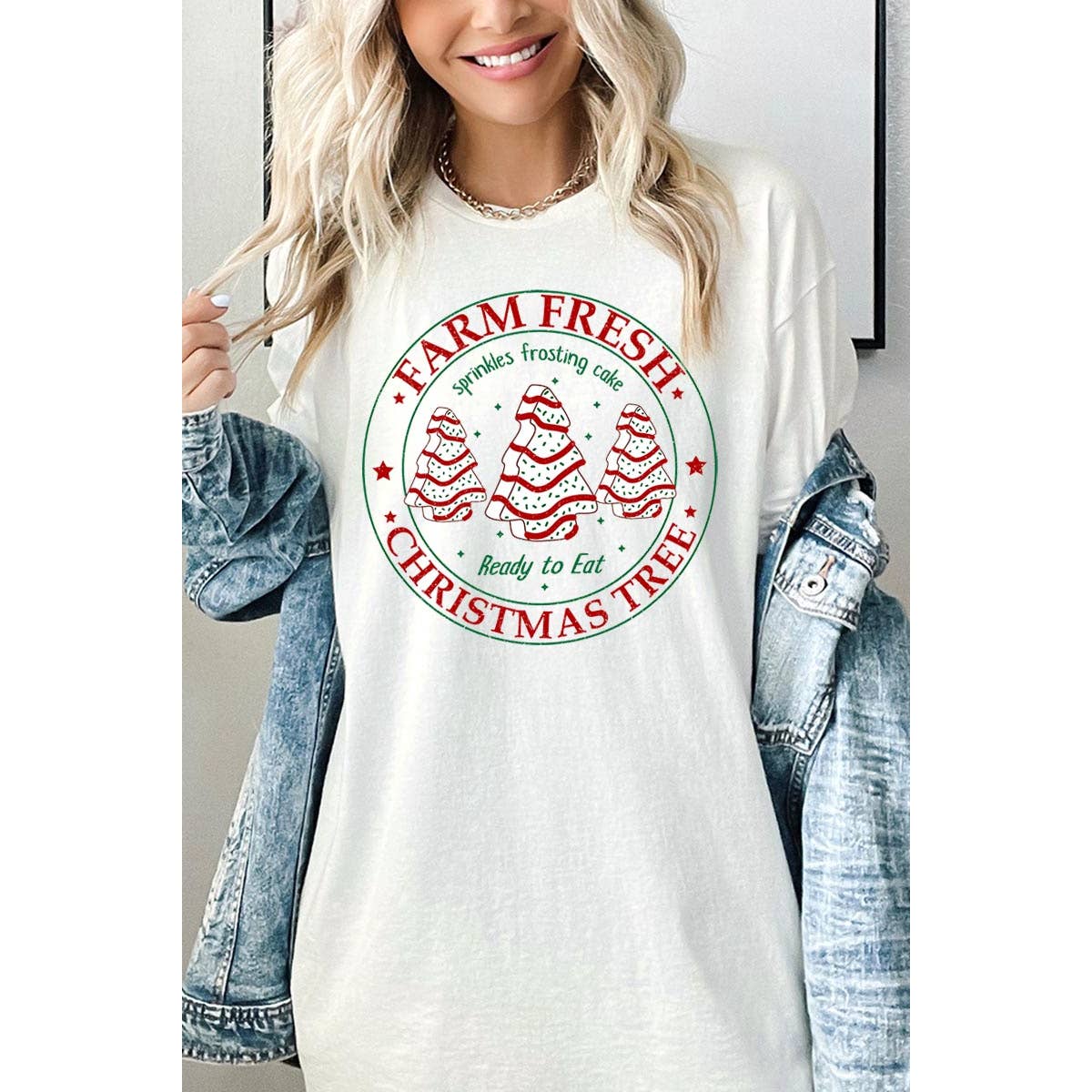 FARM FRESH CHRISTMAS TREE,SPRINKLES FROSTING CAKE HEAVY COTTON UNISEX SHORT SLEEVE 100%COTTON SALVADOR