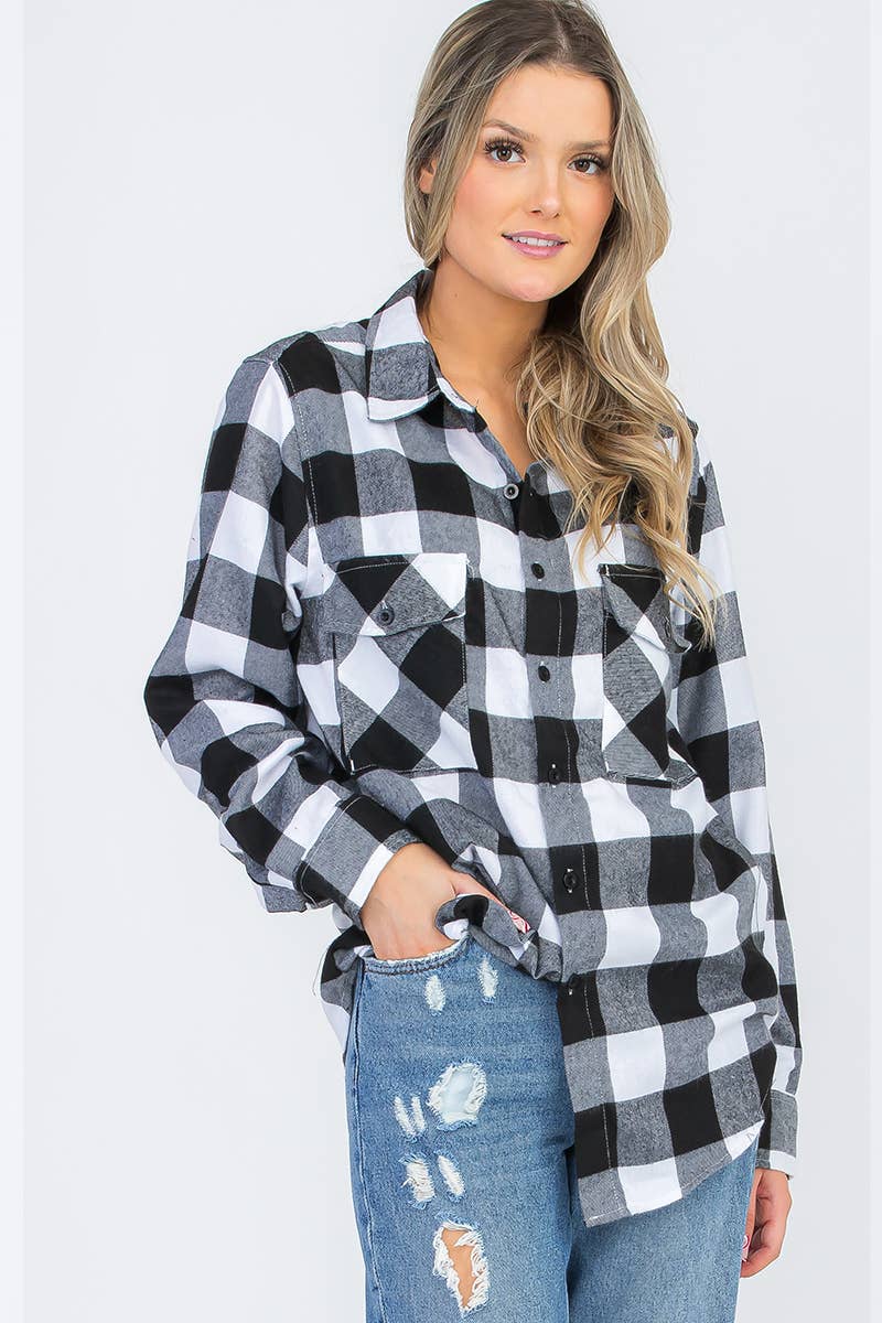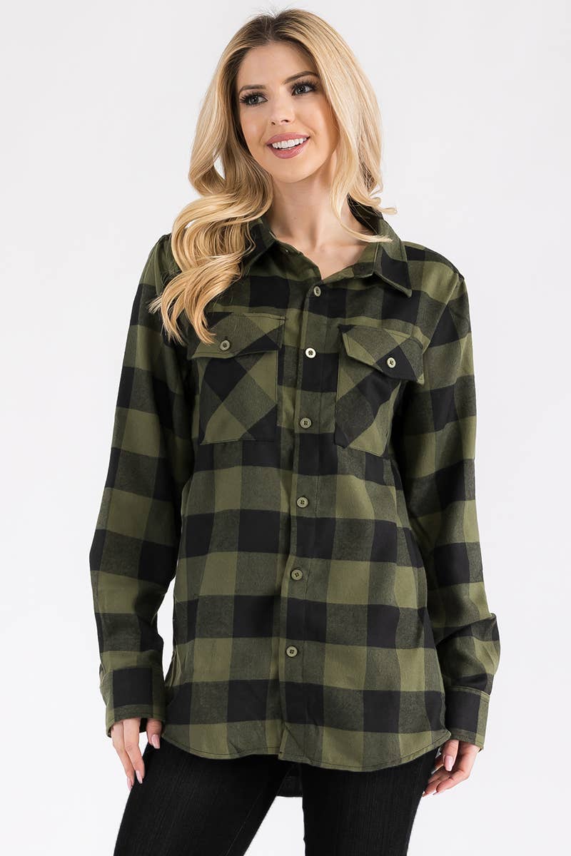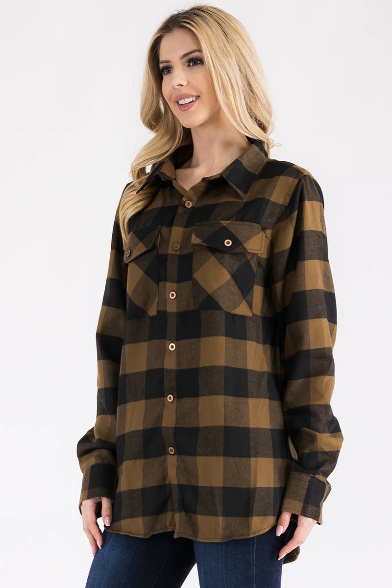 Womens Boyfriend Flannel 60 Cotton 40 Polyester - Flannel Oversized Boyfriend Fit Button Closure Long Sleeve Plaid Checkered