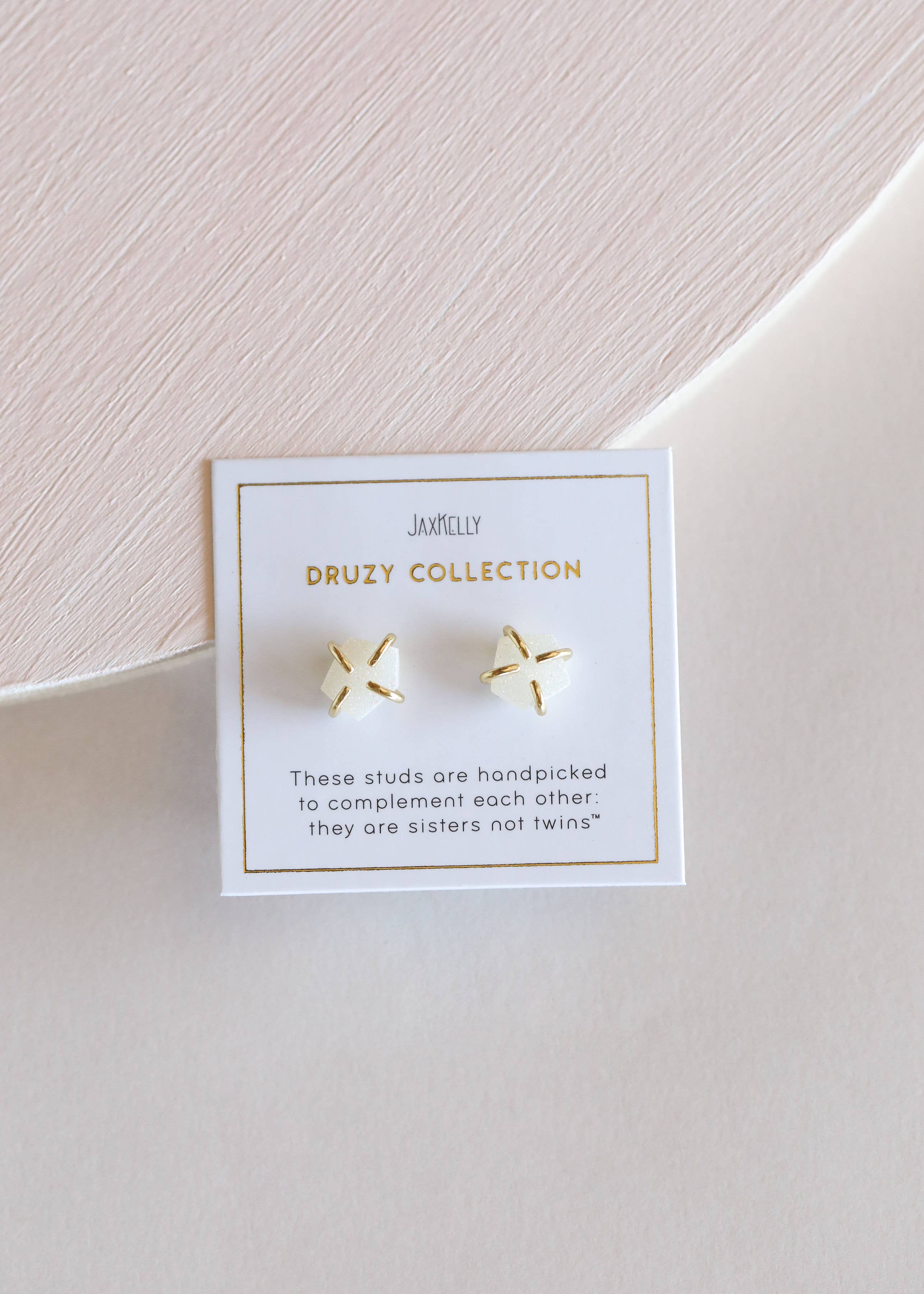 Hand-cut druzy stones are multifaceted, varying in shape and size. Each druzy stone is set in a 4-prong claw setting. Druzy stones are known for their ability to draw out negative energy & replace it with positive vibrations.