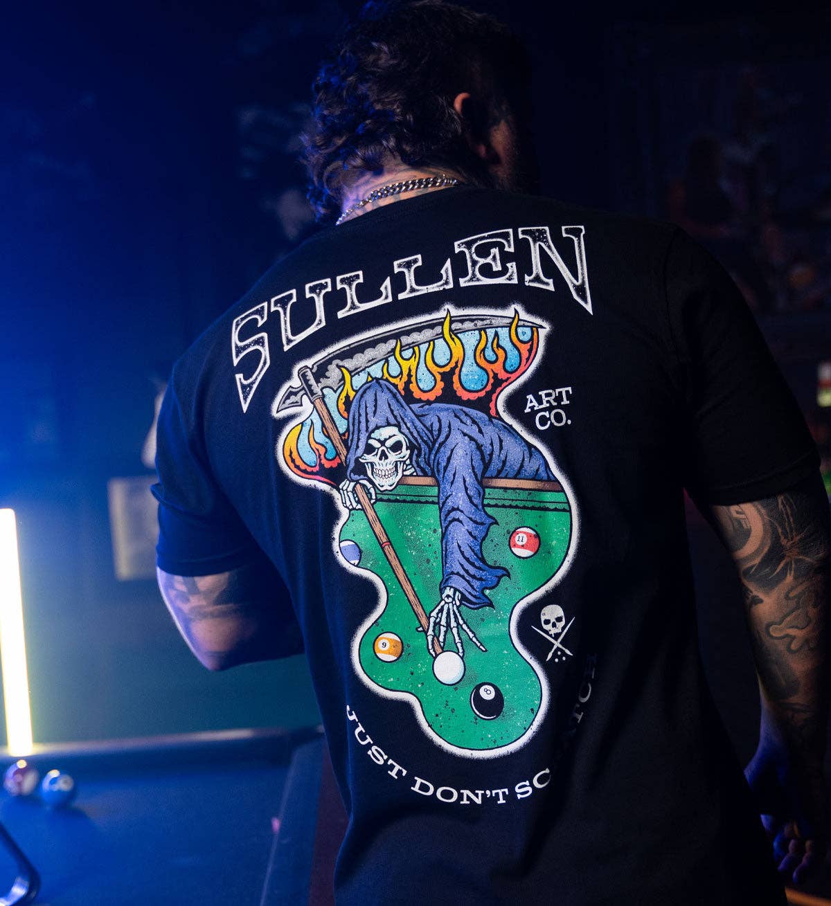 The reaper’s lining up his shot with his scythe, stakes are high. Printed in a retro color-scheme on our jet black Premium Tee for that clean, soft fit built.