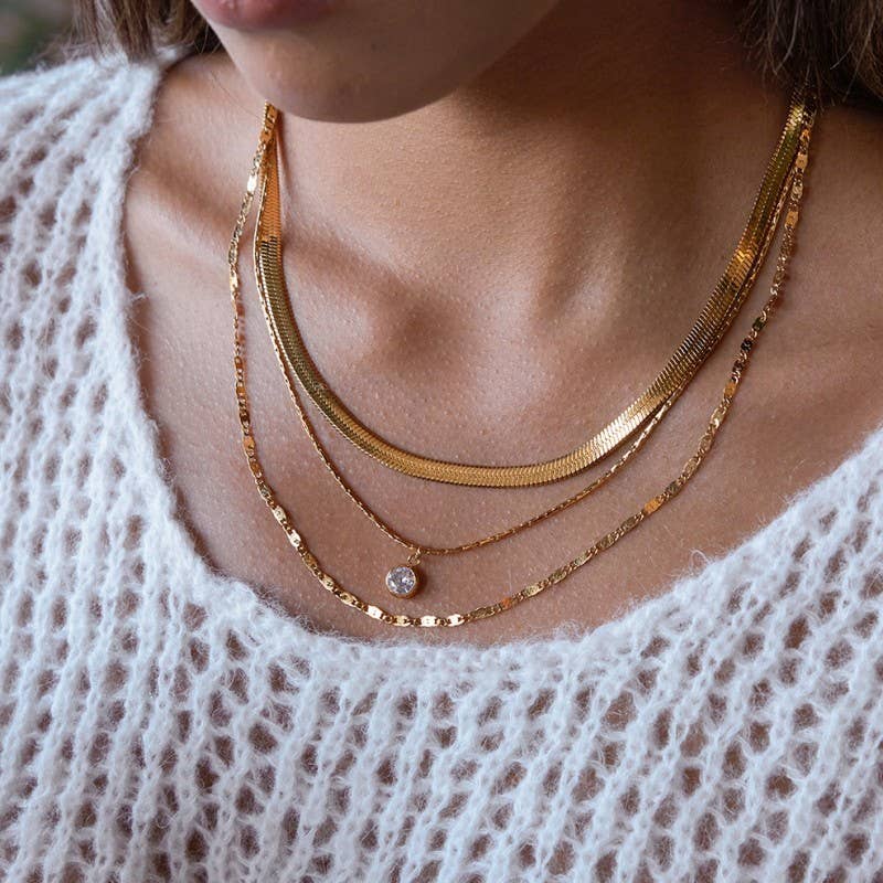 18K Stainless Steel Tarnish-Free Necklace, classic multi layer with rhinestone pendant. Crafted from high-quality stainless steel with an 18K gold finish, this necklace is designed to resist tarnish and maintain its shine.