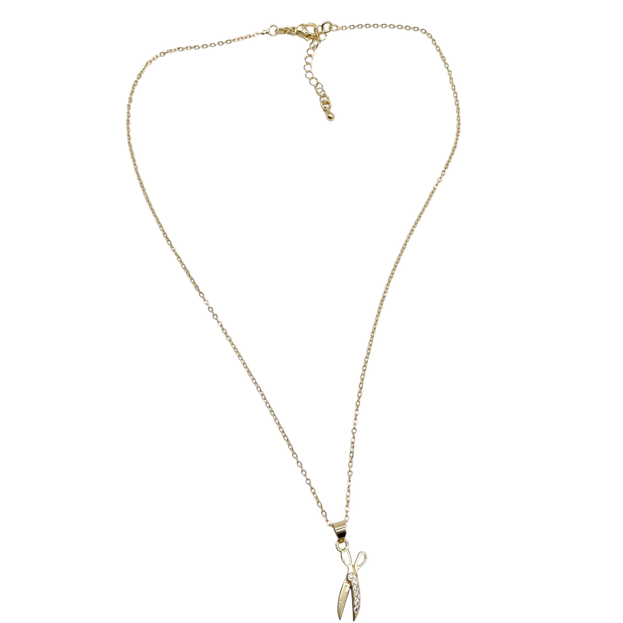 Delicate and timeless, this dainty scissors necklace adds the perfect touch of elegance to any look. Crafted on a high-quality, non-tarnishing chain. The adjustable length makes it easy to layer or wear solo, ensuring a flattering fit for every neckline. Whether you're dressing up or keeping it casual, this minimal charm necklace is a subtle yet meaningful addition to your jewelry collection. Approximately 17.5"-19.5" in length. Choose from gold or silver. I