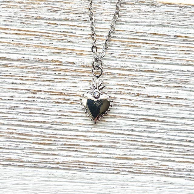 Delicate and timeless, this dainty flaming heart necklace adds the perfect touch of elegance to any look. Crafted on a high-quality, non-tarnishing chain. The adjustable length makes it easy to layer or wear solo, ensuring a flattering fit for every neckline. Whether you're dressing up or keeping it casual, this minimal charm necklace is a subtle yet meaningful addition to your jewelry collection. Approximately 17.5"-19.5" in length.