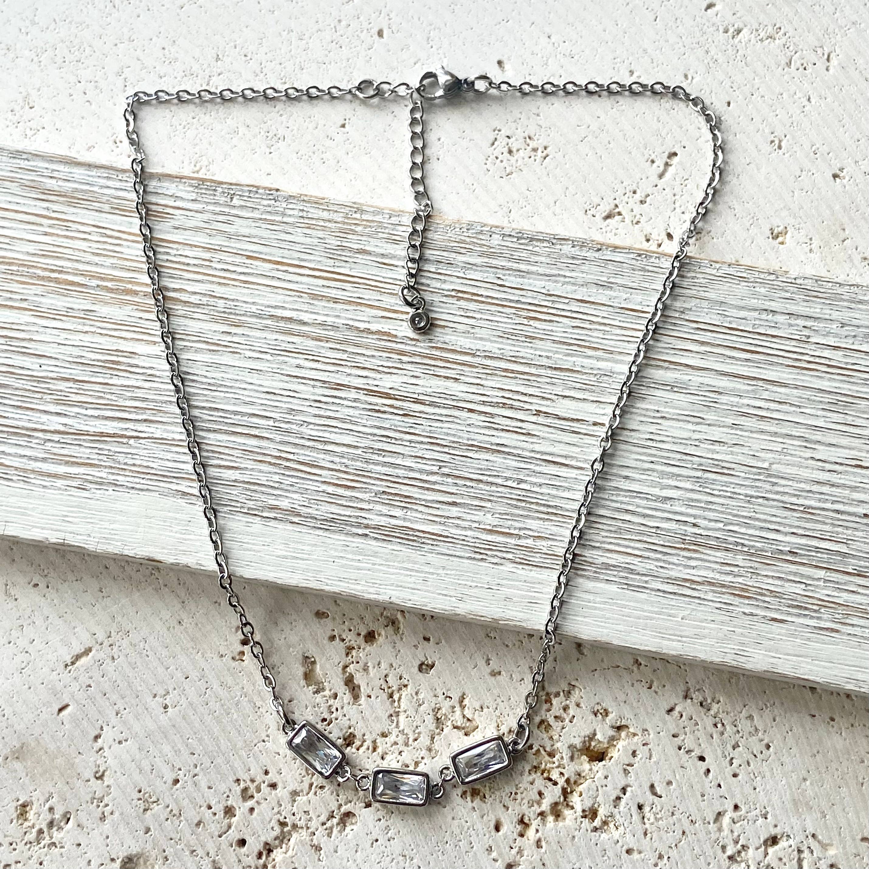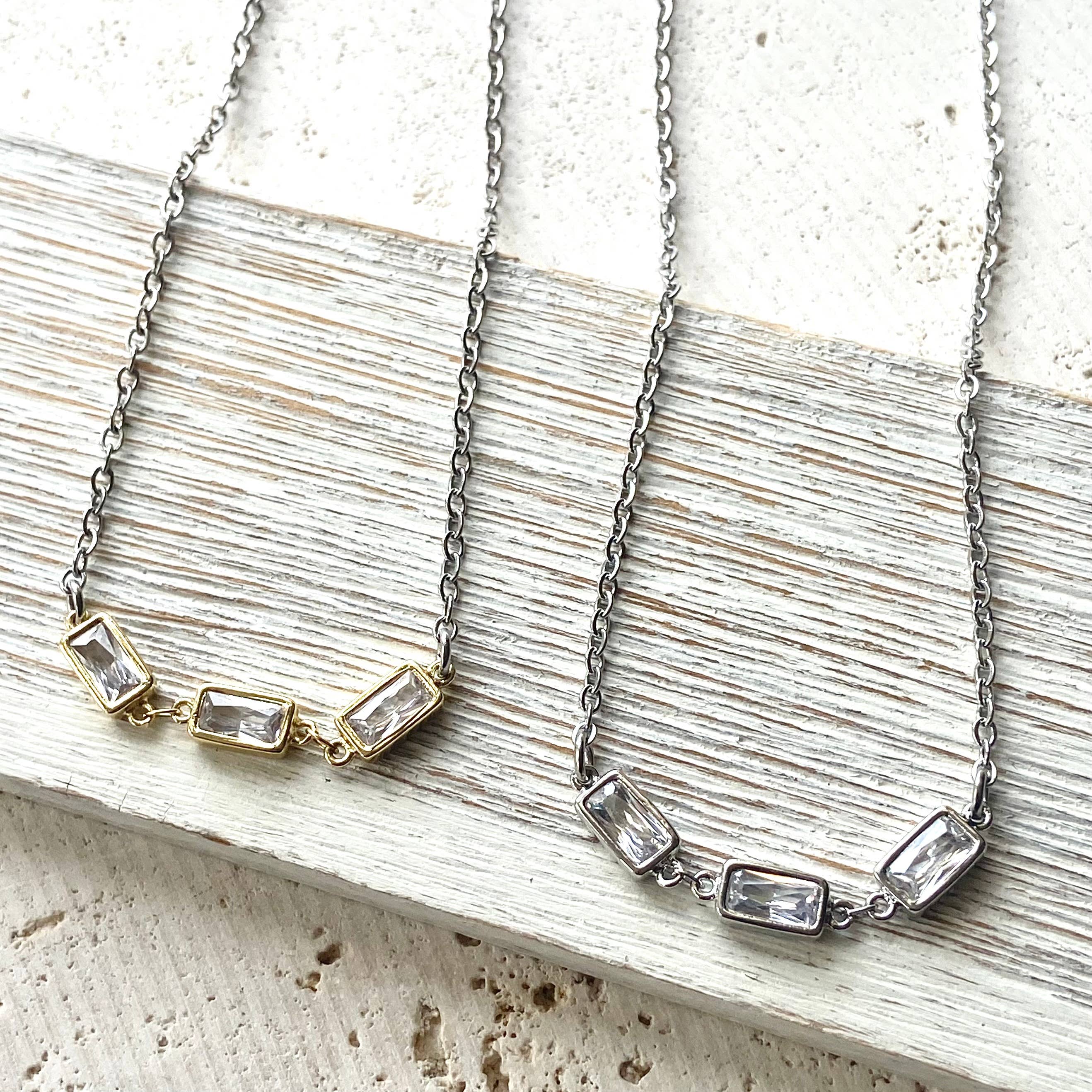 These layering necklaces are great to wear alone or layer them up. Non tarnishing stainless steel. Adjustable 16-18”. Choose your colors. ***this listing is for one layering triple crystal rectangle necklace.