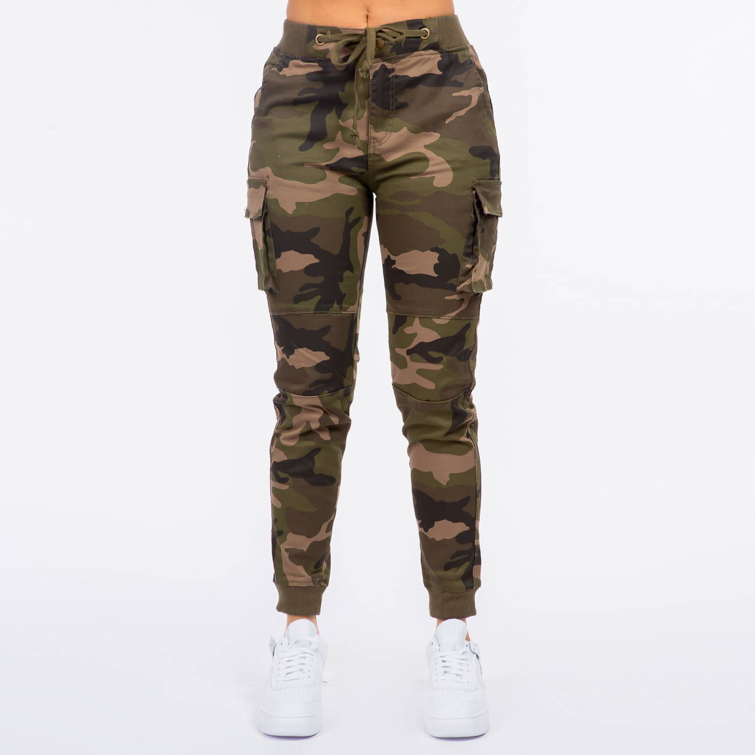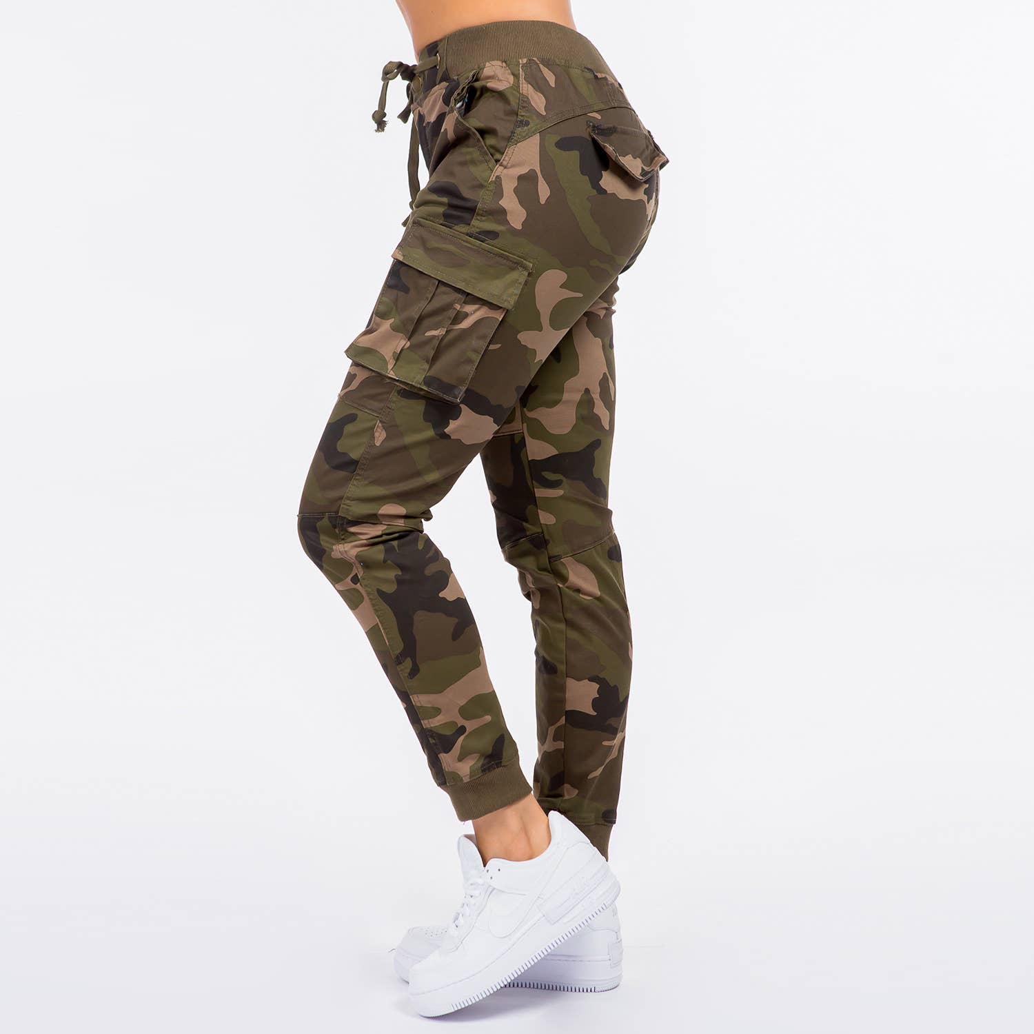 CARGO POCKET JOGGERS WITH DRAWSTRINGS - ELASTIC BANDED WAIST - CARGO POCKETS - ELASTIC BANDED HEM SIZE S : WAIST - 26 INCH, INSEAM - 28 INCH *JUNIOR SIZING IN GENERAL IS MORE FITTING AND SITS TIGHTER AVAILABLE IN JUNIOR SIZING ONLY IMPORTED, DESIGNED IN USA