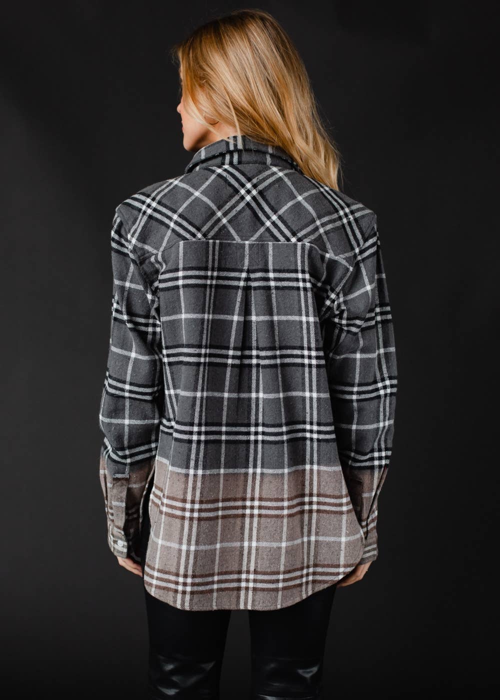 Gray, black & white plaid flannel with hand bleached dipped contrast 100% Cotton