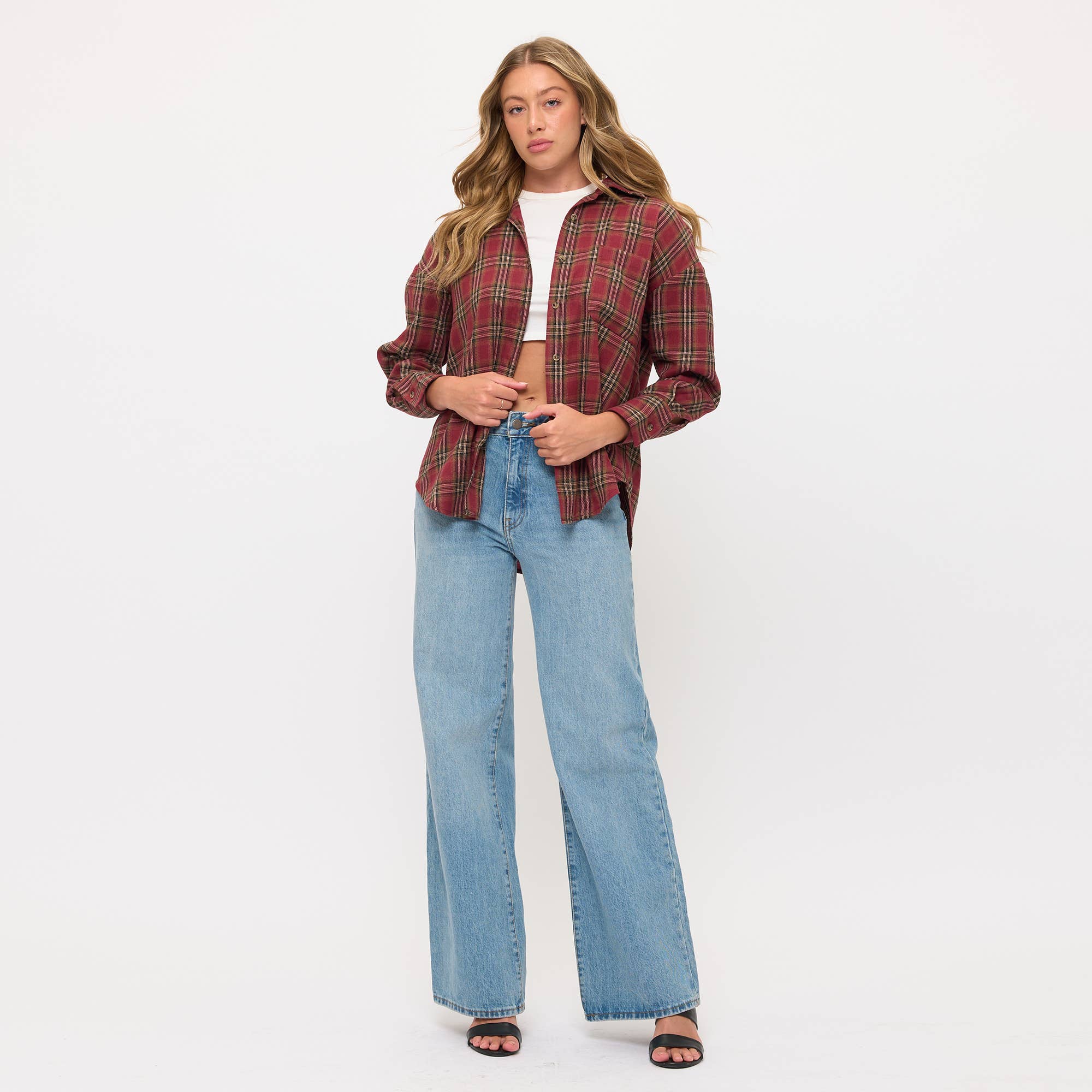 Wrap yourself in cozy comfort and timeless style with our plaid button-up flannel overshirt. Crafted from soft brushed fabric, this piece features a relaxed fit, front patch pocket, and drop shoulders for a laid-back look.