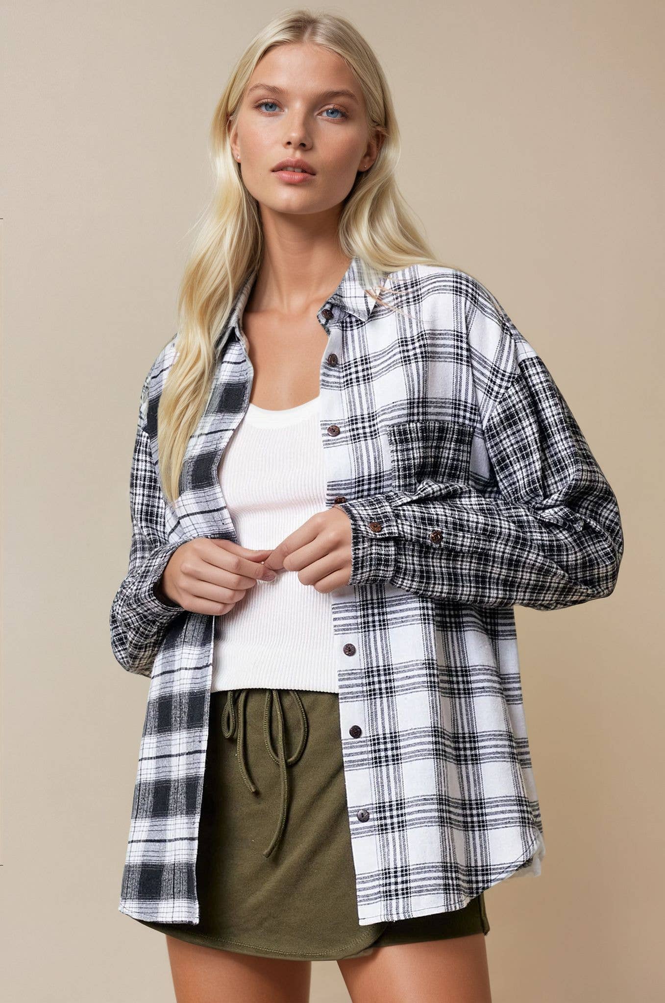 - Black and white plaid pattern for a classic, versatile look