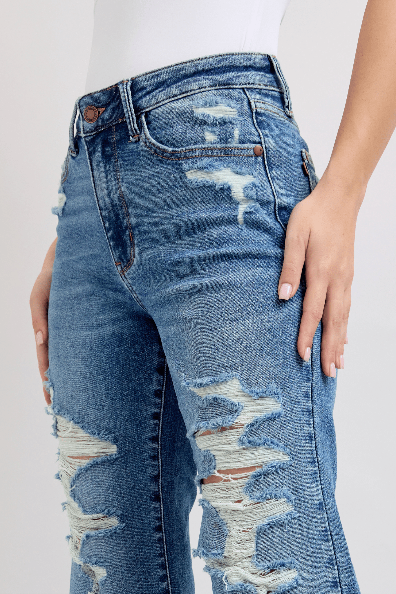 From the esteemed brand Judy Blue Jeans, we bring you the Heavy Distressed High Waisted Straight jeans. These jeans encapsulate a contemporary style with a straight cut, making them a versatile addition to any wardrobe. Judy Blue has been crafting superior quality denim since 1999, and these jeans are no exception. They are expertly designed to provide a body-hugging fit and feature unique wash techniques, reflecting the brand's commitment to innovation. With their heavy distressed detailing, these jeans capture the laid-back, effortlessly chic vibe of California. Perfect for a casual day out or to add a stylish twist to your outfit.