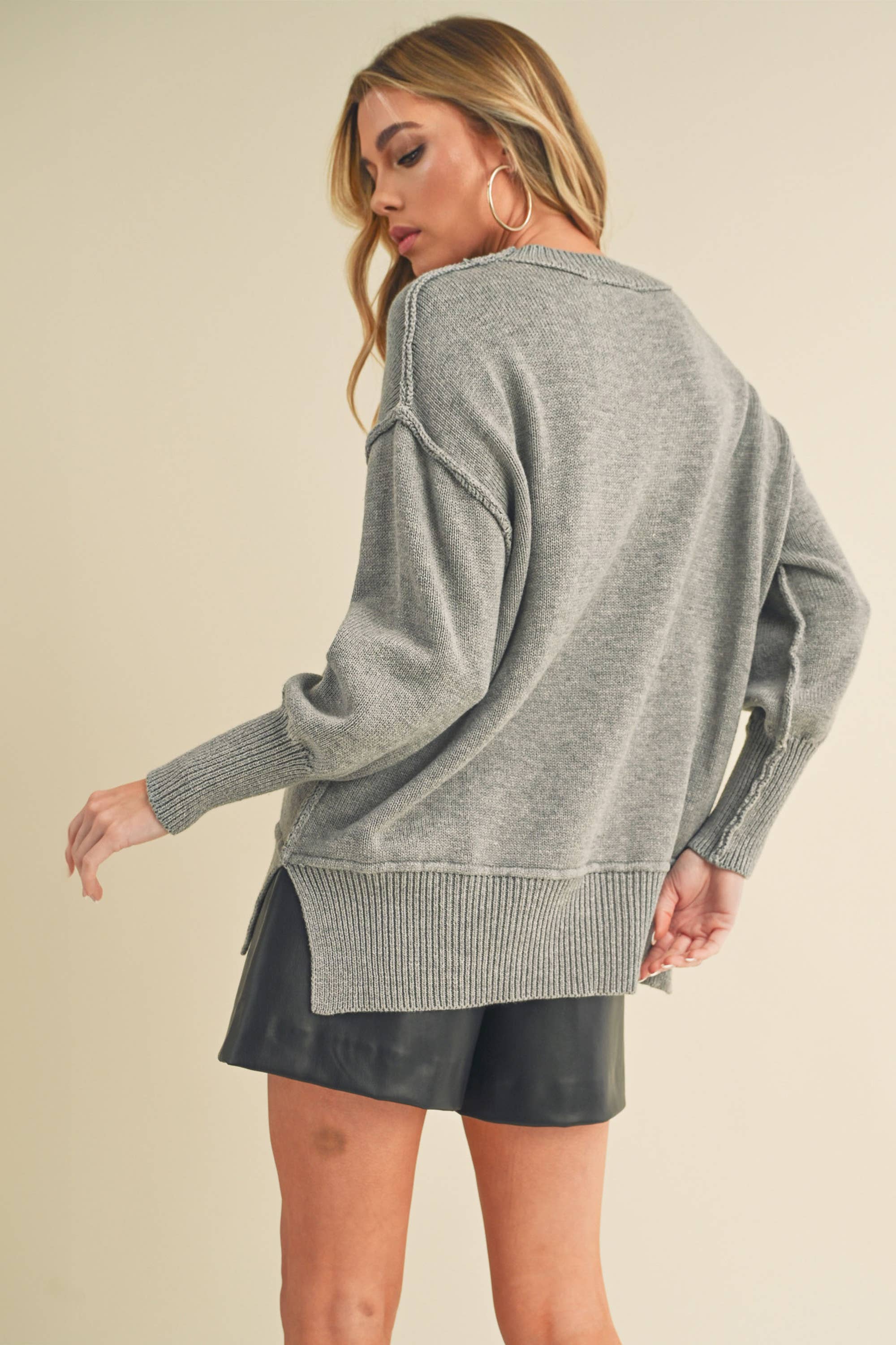 The Ina sweater effortlessly blends charm and versatility. She's designed as a adorable pullover style, boxy, slouchy silhouette, exposed seams, and side slits, it's a wardrobe essential. Transition effortlessly from gym sessions to fun girls' nights out, embodying casual chic comfort as the perfect go-to piece.