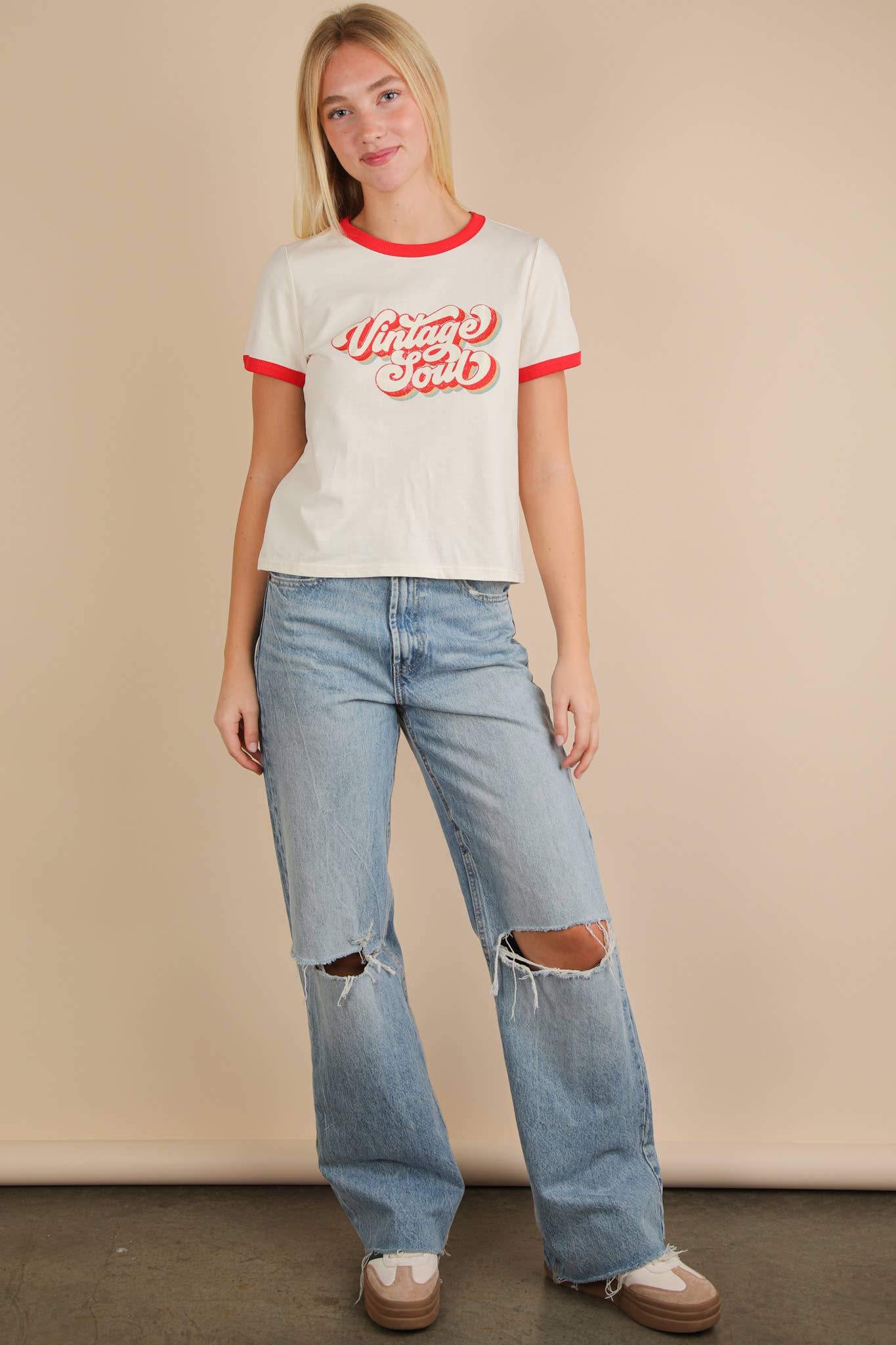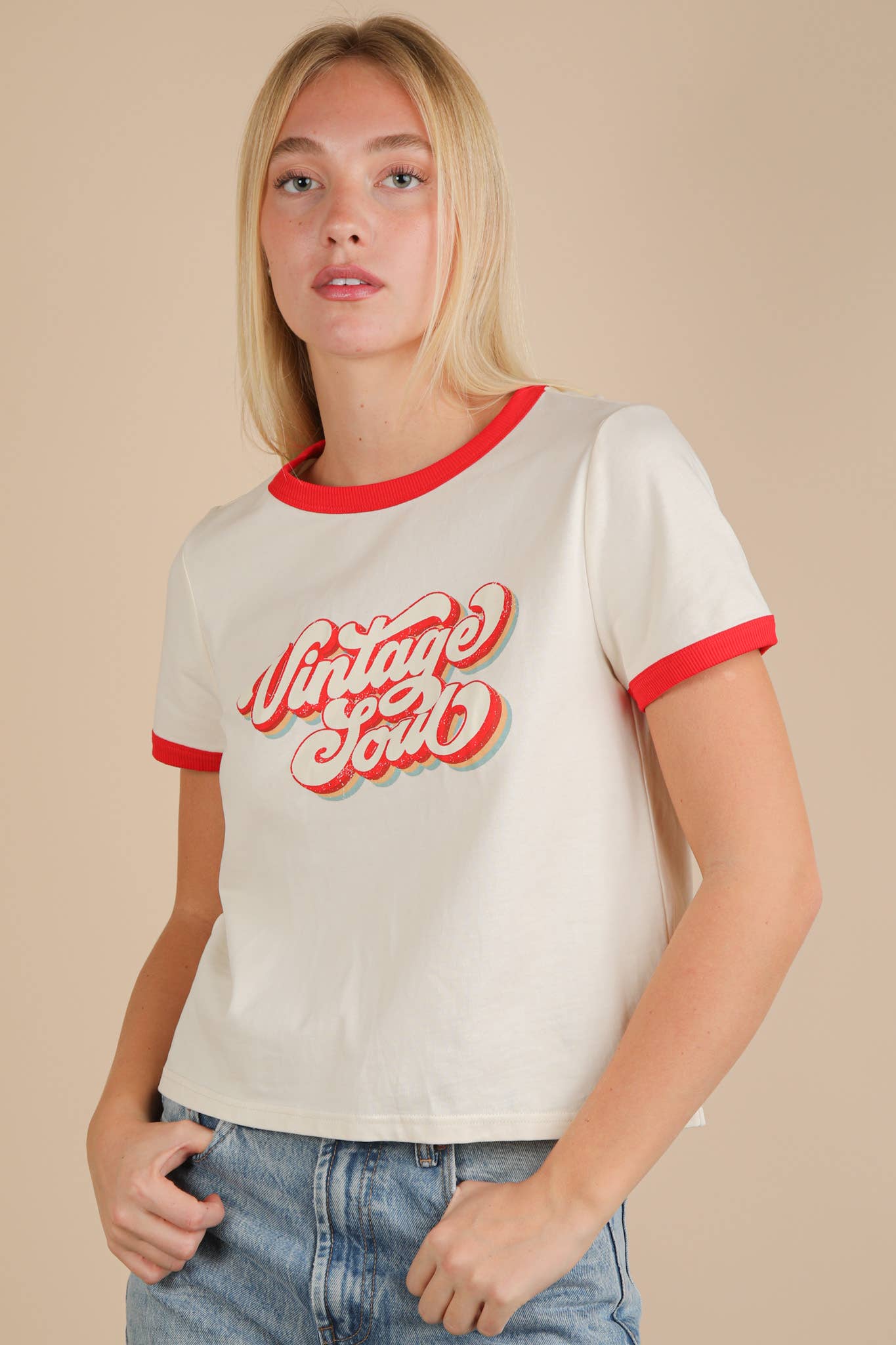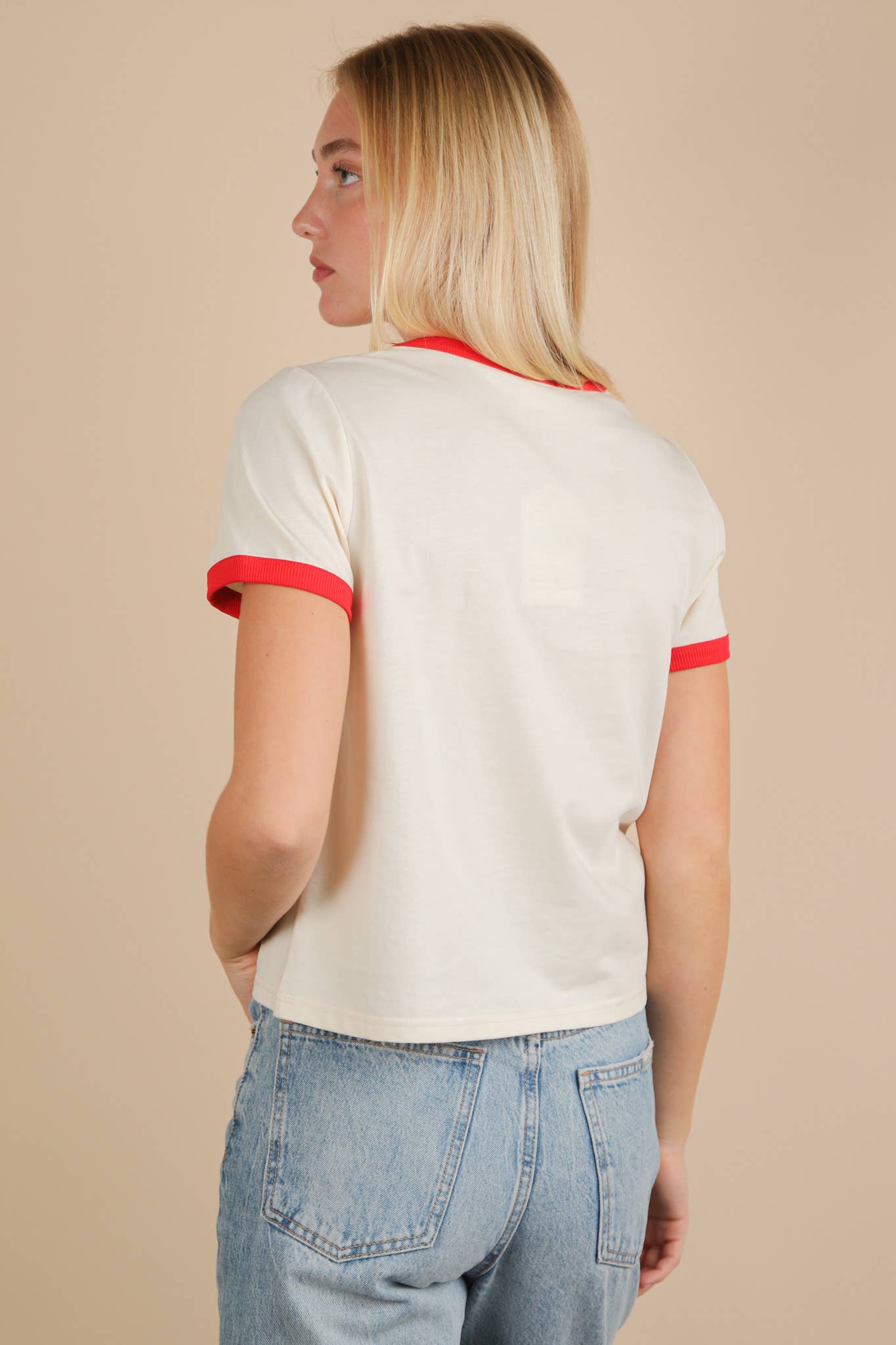 - Screen Printed Casual Knit Top - Round Neck - Short Sleeve - Graphic Tshirt - Fourth of July Outfit (Model height: 5"8", wearing a Small,