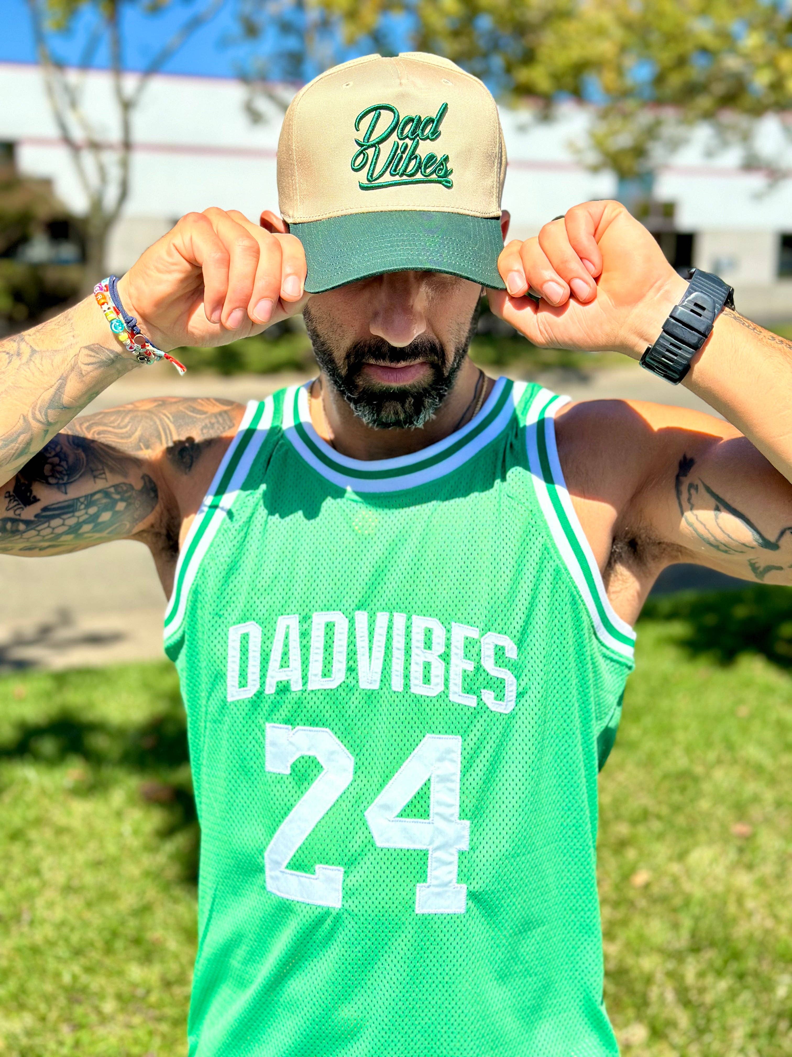 These limited release Khaki & Green Dad Vibes Script hats are a guaranteed head turner. Dad Vibes embroidered on the front in off shiny green thread. This hat looks even better on and will be a go-to for your every day dad life.